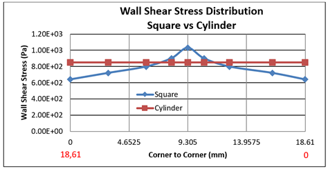 Figure 5 Wall Shear Stress Distribution Square vs Cylinder |