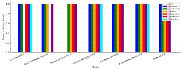 occurring weed species—Datura metel, Alternanthera sessilis, Calotropis gigantea, Argemone mexicana, Tridax procumbens, Lantana camara, and Sida acuta. These