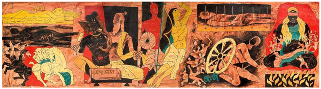 the Mahabharata are the main sources of inspiration that connect abstract