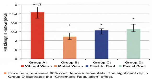 Visual art has long been recognized for its aesthetic value, yet its functional role in modulating psychological states through color remains a critical area of study. This research explores the relationship between chromatic variations specifically hue, saturation, and brightness and their subsequent impact on human affect and emotional stability. Methodology: The study employed an experimental design involving a sample of 100 university students. Participants were exposed to a curated series of visual artworks categorized by dominant color temperatures (warm vs. cool) and saturation levels. Data were collected using the Positive and Negative Affect Schedule (PANAS) and self-report Likert scales to measure immediate shifts in mood and the capacity for emotional regulation following exposure. Results: Preliminary findings indicate that high-saturation warm colors (reds and oranges) significantly correlate with increased physiological arousal and energetic mood states, whereas low-saturation cool colors (blues and greens) facilitate emotional cooling and stress reduction. The data suggest that chromatic variations serve as a non-conscious trigger for the autonomic nervous system, influencing how students regulate academic-related anxiety. Conclusion: The study concludes that deliberate chromatic choices in visual media are potent tools for emotional regulation. These findings have significant implications for the fields of Art Therapy, interior design in educational institutions, and clinical psychology, suggesting that "chromatic environments" can be engineered to improve the mental well-being of the student population. Keywords: Color Psychology, Visual Arts,