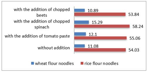flour noodles contributes to a decrease in energy value by 5% and an increase