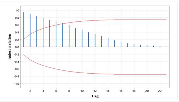 software Minitab 21.1. The Box Jenkins approaches are also used to predict
