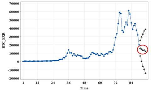 From January 2015 through June 2022, monthly data for the exchange rate of bitcoin were chosen for this study. The information is gathered from https://www.investing.com.