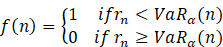 In this way, we get binary sequence of ones and zeros for the days of test period. Where one denotes the exception. By calculating total number of one in sequence we have total exceptions over test period. We can also get the probability of exception by calculating mean of these sequence (1,1,1,0,0, 1,…) that is required failure rate. i.e. for sequence (1,1,1,0,0, 1,…) where 1 indicates failure and 0 indicate non-failure day