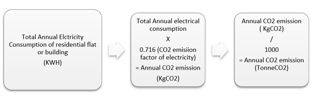 total CO2 emission from a multi-storied multi-tenement urban residential