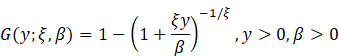 the exceedance distribution follows a Generalized Pareto Distribution (GPD):