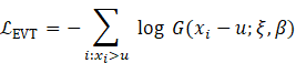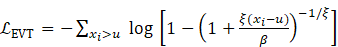 · u is a chosen threshold based on empirical quantiles (e.g., 95th percentile).