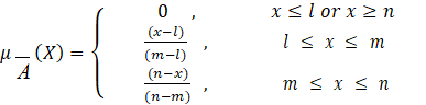 Where l and n are representing the lower and the upper boundaries respectively, with membership degree is 0 and m is the centre with membership degree is 1