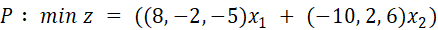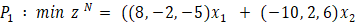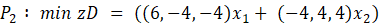 P2: max zD = ((6, −4, −4) x1 + (−4, 4, 4) x2)